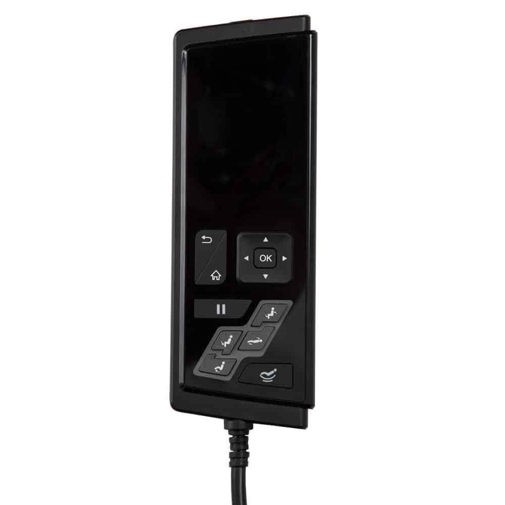 The ottoman will scan your legs to ensure the optimal leg length for your height. The foot component will extend outwards and then retract inwards. Simply apply pressure with your feet to indicate the leg scanner that length is at the desired position. The remote also allows for one to auto adjust the leg component to either extend or retract to the user’s personal needs.