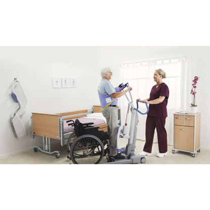 The Arjo Sara Flex HEB1000 enables a single caregiver to assist a patient or resident from a seated to a standing position, in one natural movement. Sara Flex is specifically designed for patients and residents who are unable to mobilize without assistance but able to contribute to the action or perform part of the action independently.