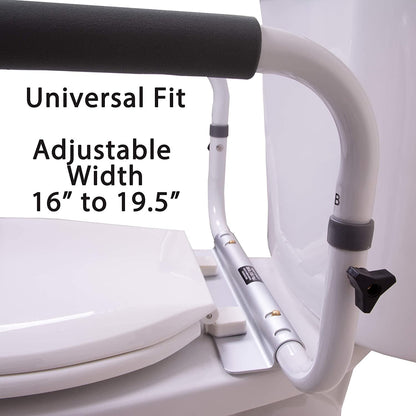 - ONE SIZE FITS MOST TOILETS: The toilet safety frame features a width that is adjustable from 16"-18" to fit most elongated and round toilets. The sturdy toilet rails provide individualized grab bar support when sitting or standing while using the toilet