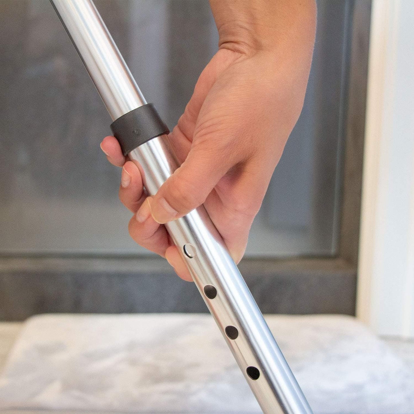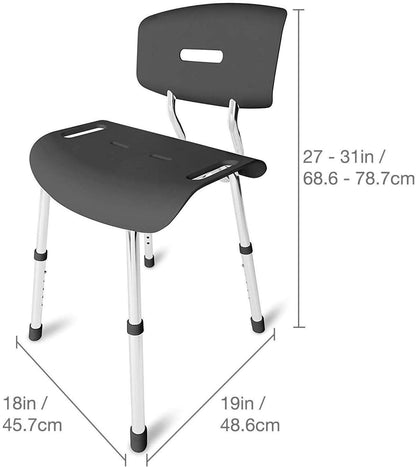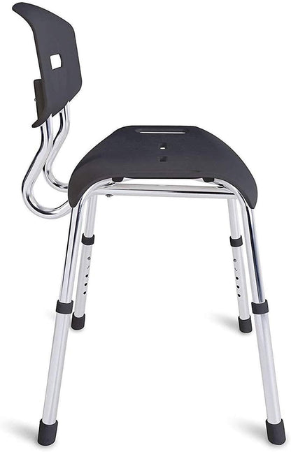 This stylish DMI Euro-Style shower chair will provide welcome relief if you have trouble standing or worries about falling in the shower. Its modern design nicely complements your bathroom décor. This bath chair will make showering easier and safer for people with disabilities, older people or those recovering from surgery or injuries. The chair’s frame is made from rust-resistant aluminum which is incredibly strong yet lightweight. The shower chair weighs only 7 pounds yet can support up to 300 pounds. And the suction cup rubber tips are slip resistant, giving the chair firm footing on wet surfaces.