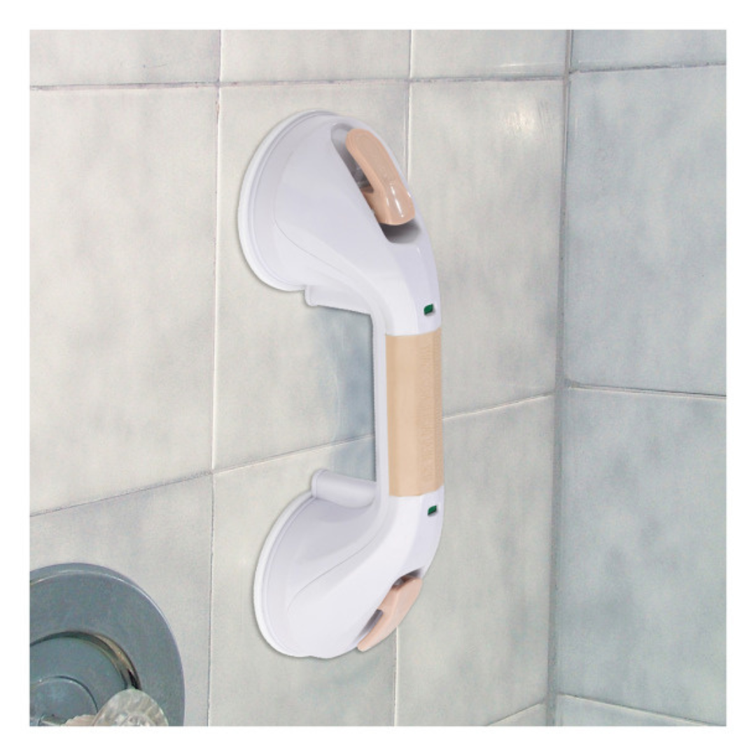 - Color indicators ensure safe and secure installation. Green display means the grab bar is secure and ready for use, red will be displayed if the seal is not airtight.