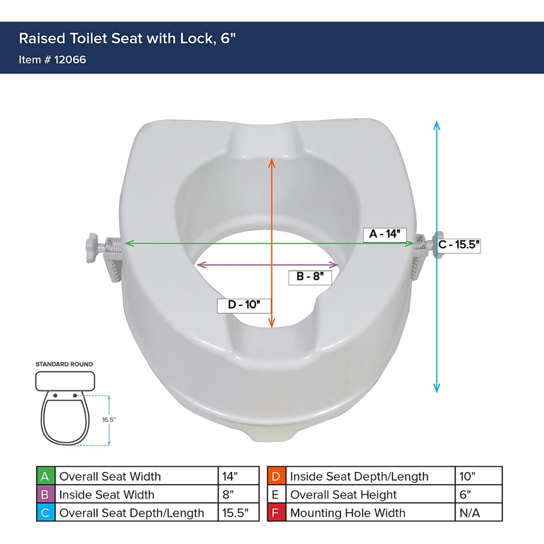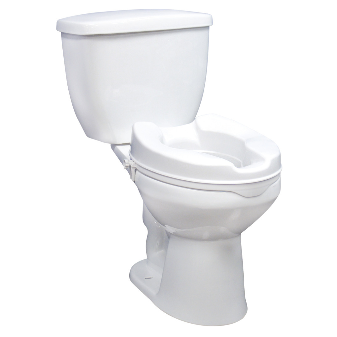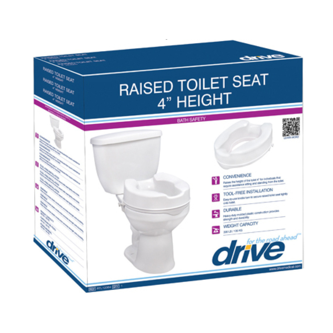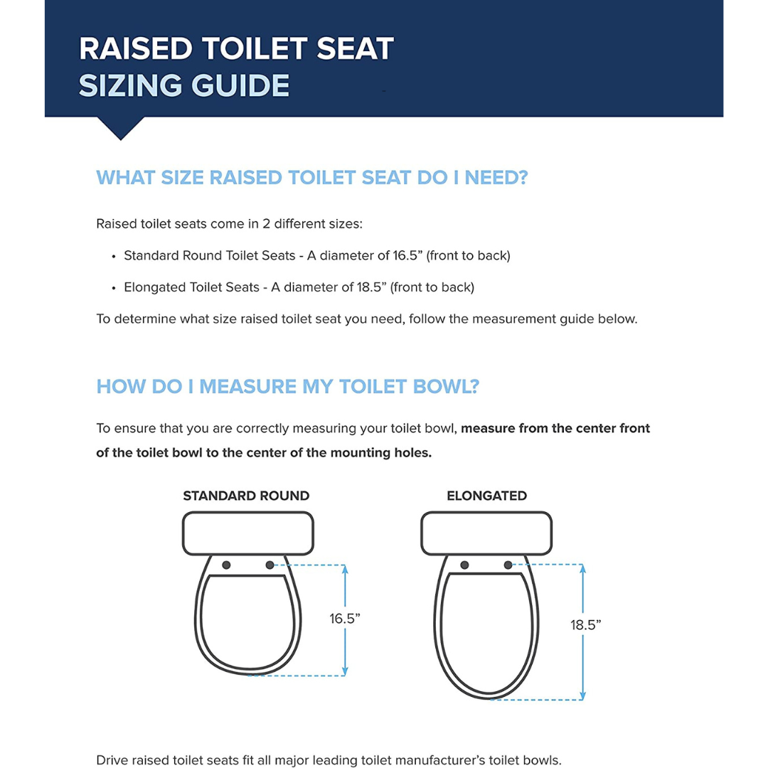 Drive Medical's premium toilet seat riser is designed to aid people in getting up and sitting down. Our elevated toilet seat adds an extra 6-inches of height to the toilet and includes worm screws that can be easily added or removed per individual user requirements. It fits on most elongated and standard toilets and installs without tools.