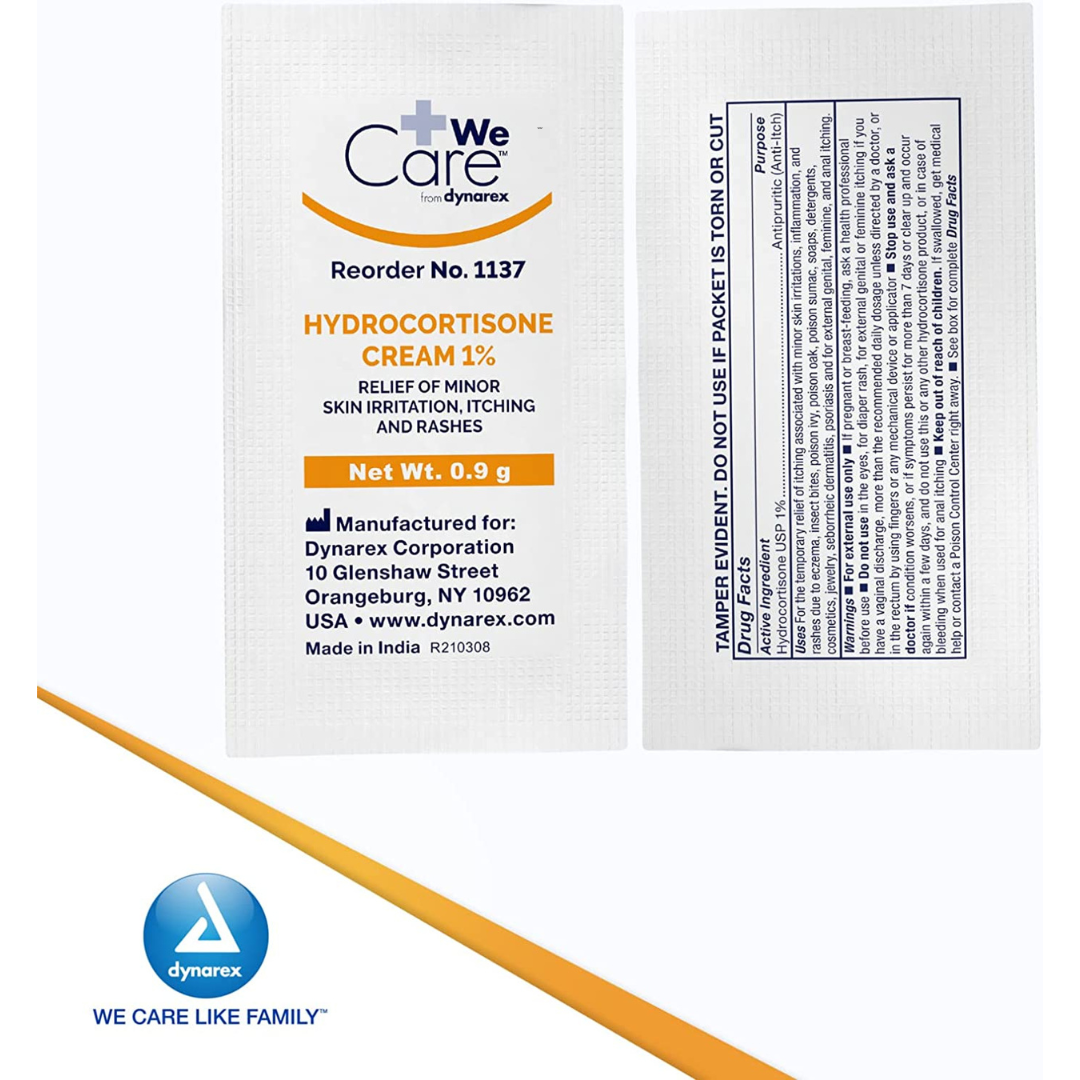 Dynarex 1% Hydrocortisone Cream Packets - 144 Packets per Box