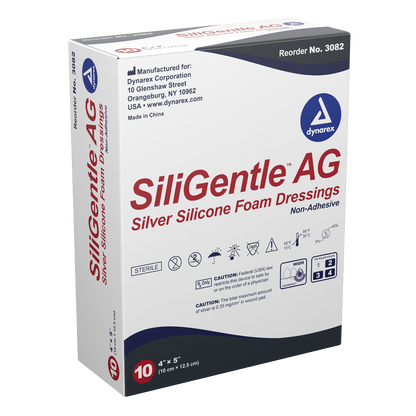 Dynarex SiliGentle AG Silver Silicone Foam Dressing - Box of 10