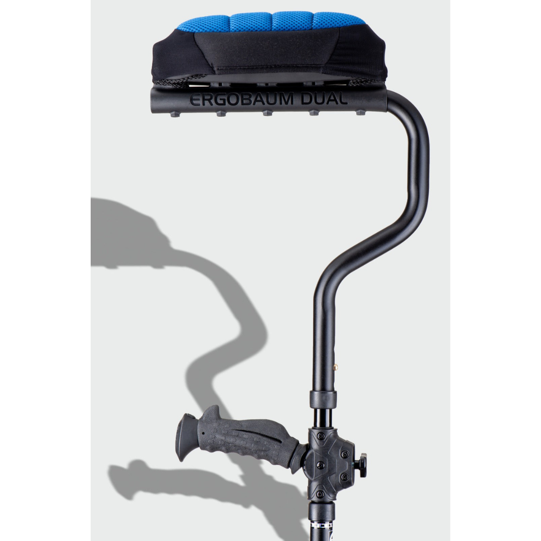 Introducing the ERGOBAUM DUAL: A groundbreaking dual-purpose solution, this underarm crutch boasts an ingenious shock-absorption mechanism coupled with forearm support. Through its assortment of patented built-in shock absorption technologies, the DUAL ensures unparalleled comfort by mitigating the impact of pressures associated with conventional underarm crutches. Enhanced further with ERGO-PAD underarm air cushions and ERGO CAP crutch tips, these meticulously crafted ergonomic innovations synergistically establish the ERGOBAUM DUAL as the epitome of advanced, supremely comfortable underarm crutches worldwide.