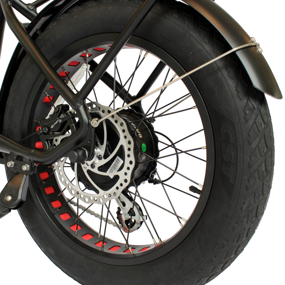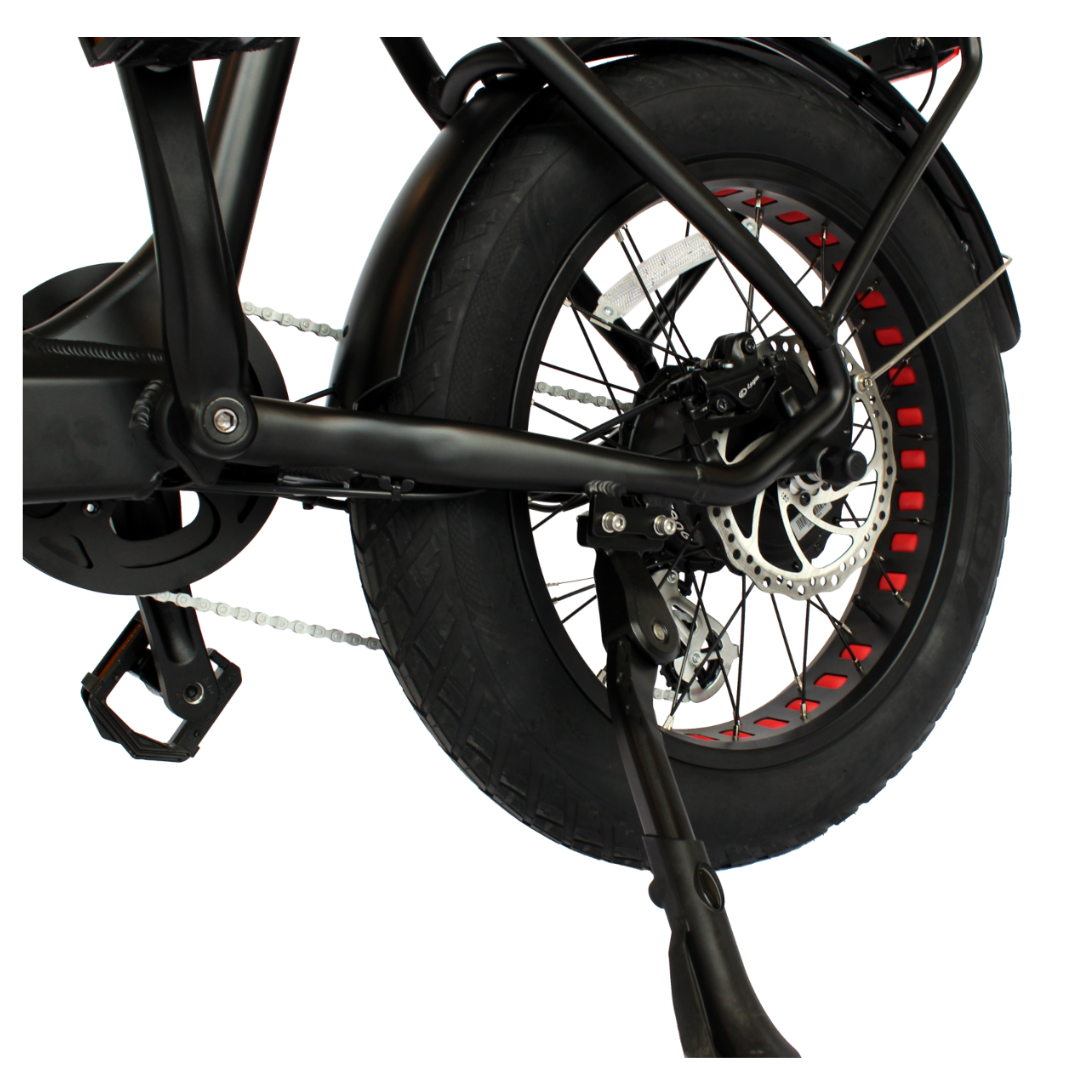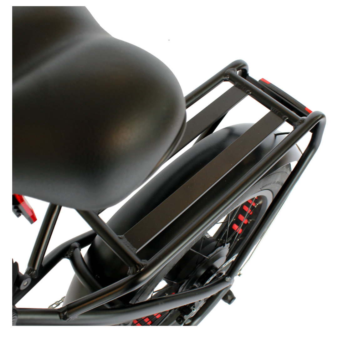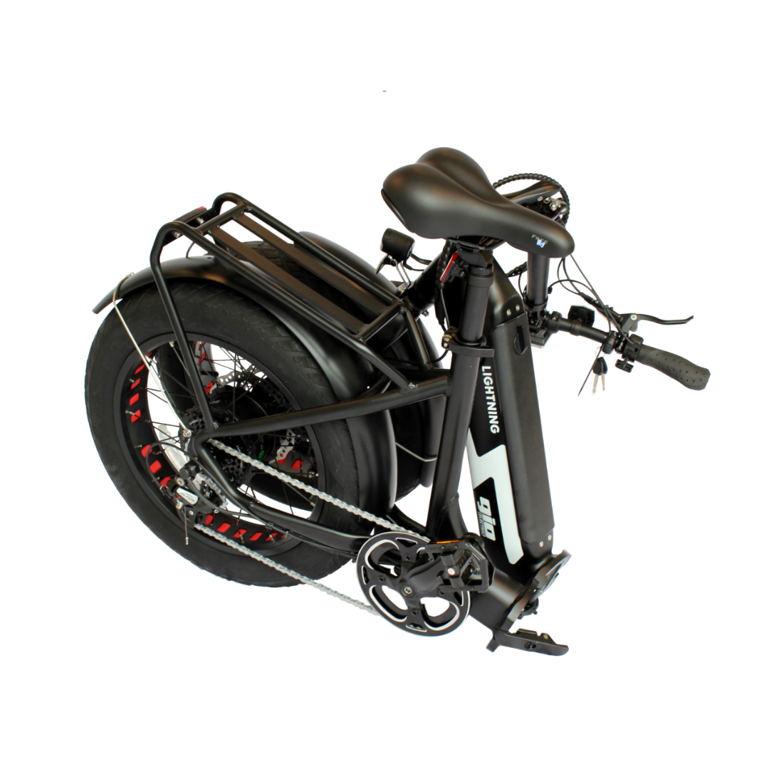 The Lightning exudes a serious sense of style with its red accented fat tires and sleek pearl black body. Its quick-release latches on the handlebars and frame ensure a swift and effortless folding process. Whether you need to store it conveniently or take it on your travels, just fold it down, and you're good to go.