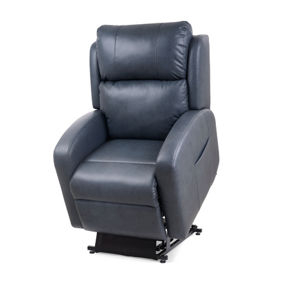 The modern and sleek design of the new Golden Technologies EZ Sleeper with Twilight positioning technology is equipped with a stylish track arm for ultimate comfort. The PR761 lift recliner is the most advanced power positioning chair in the world, featuring Golden's patented 5-motor system that provides rejuvenating positions, power lumbar support, and power headrest. By elevating the feet above the heart, users can experience a feeling of weightlessness, resulting in numerous health benefits. Additionally, the Twilight positions offered by the chair relieve pressure points and promote proper posture by supporting the natural "S" shape of the spine.