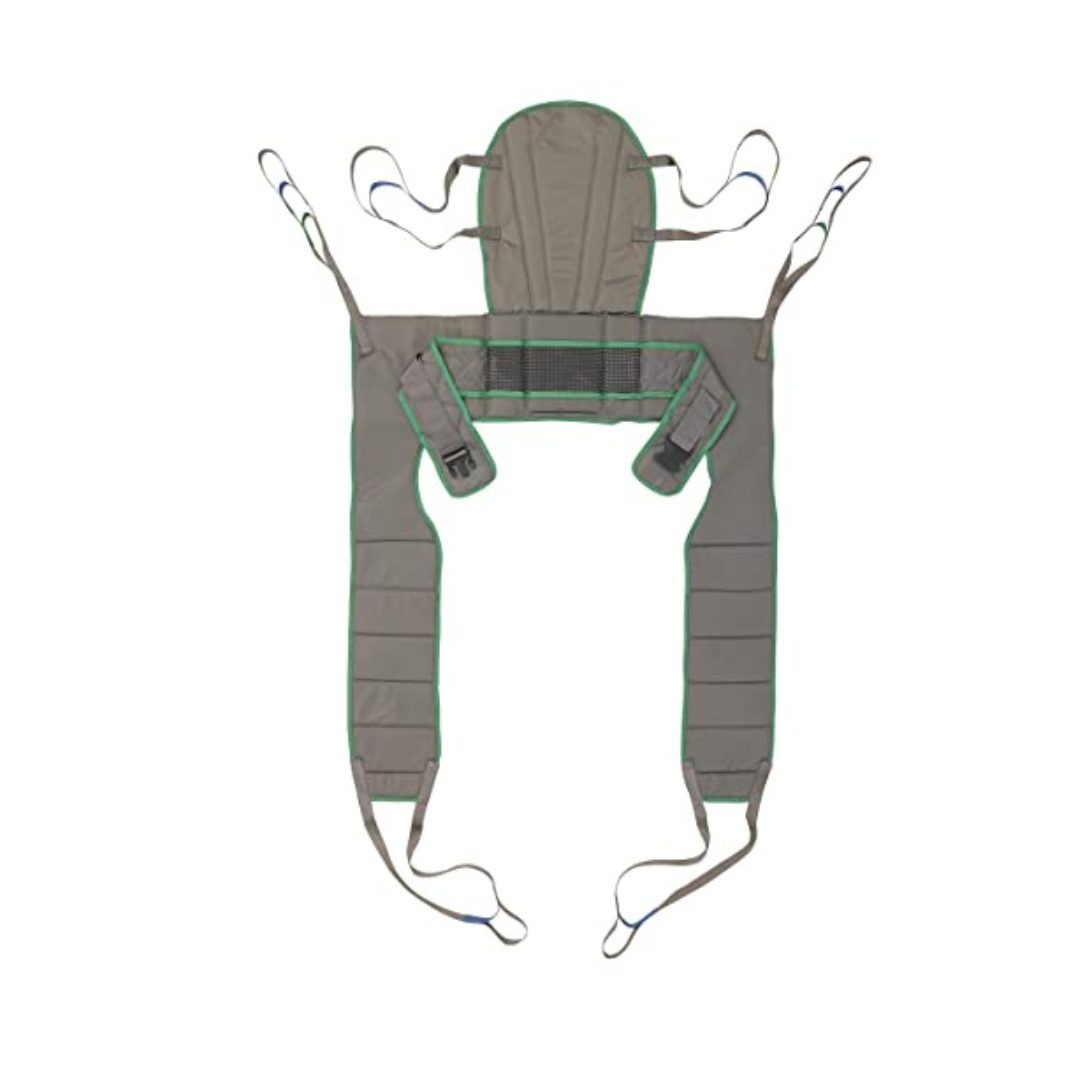 The Invacare Premier Series Dress Toileting High sling is a secure, easy-to-fit toileting sling for users who are totally or partially dependent, non-weight bearing, very heavy or have limited head control. This versatile sling provides full head and neck support. Use with the Invacare Reliant 450/600, Jasmine and 9805P Lifts.