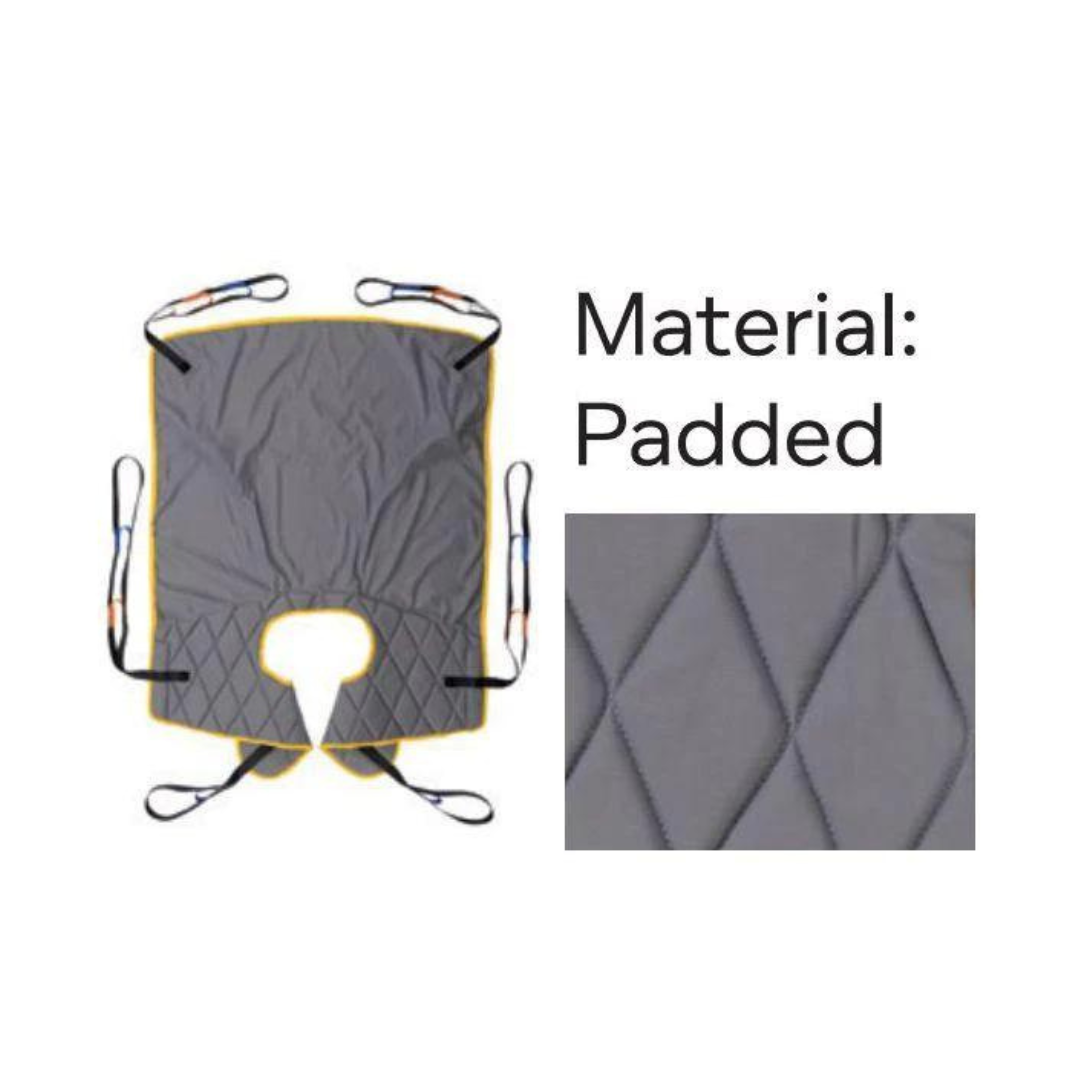 The Hoyer Professional Quick Fit Padded Sling is a versatile and easy-to-fit, general-purpose sling that works well for about 85% of residents. This simple sling is compatible with six-point spreader bars and is crafted from padded polyester, offering extra comfort and support for delicate areas. It's designed for exclusive use with the Hoyer Advance lift.