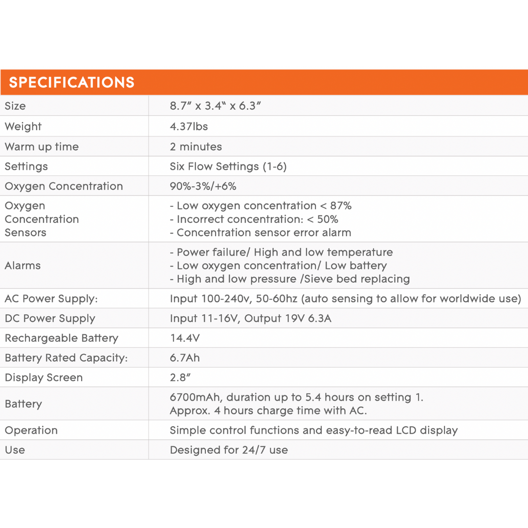 The Brand New Lifestyle Mobility Aids P2-E6Portable Oxygen Concentrator meets the FAA travel guidlines for save transport of a portable oxygen system. This unit is compact, lightweight only weighing 4.37 lbs with a 6 setting flow system. The Oxygen Concentration: 90%-3%/+6%. This new and improved unit is incredibly quiet and has excellent heat dissipation.