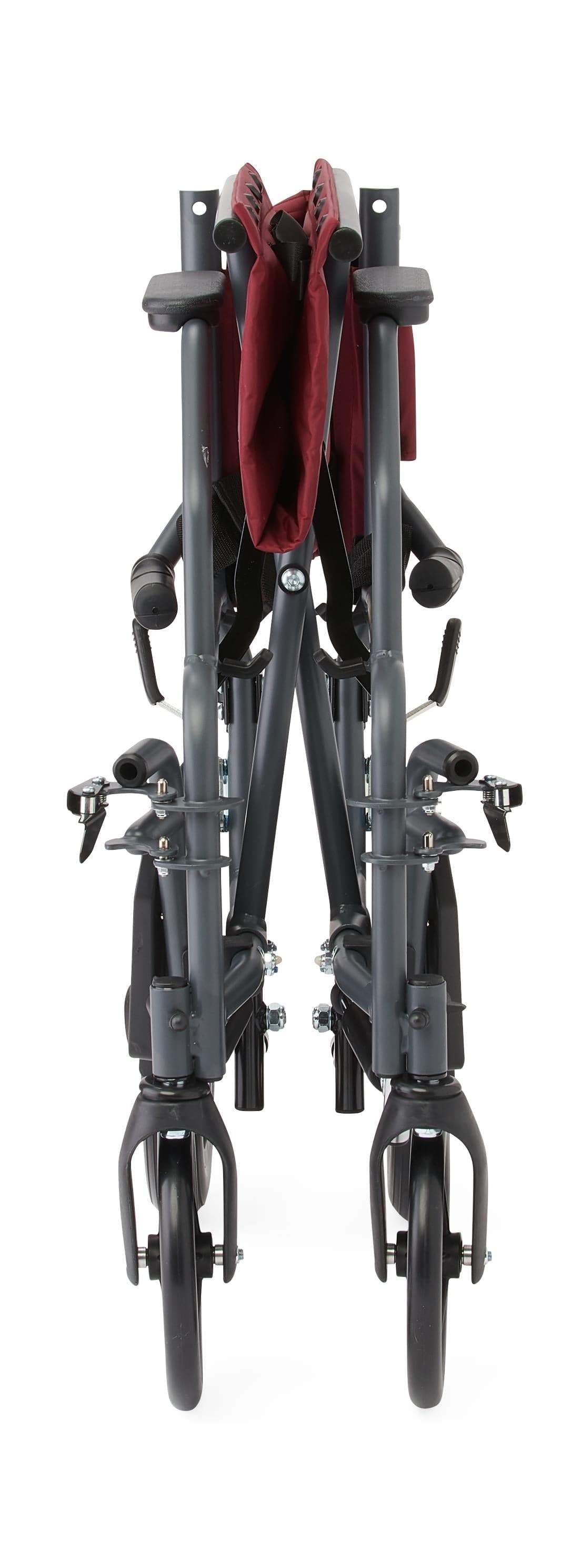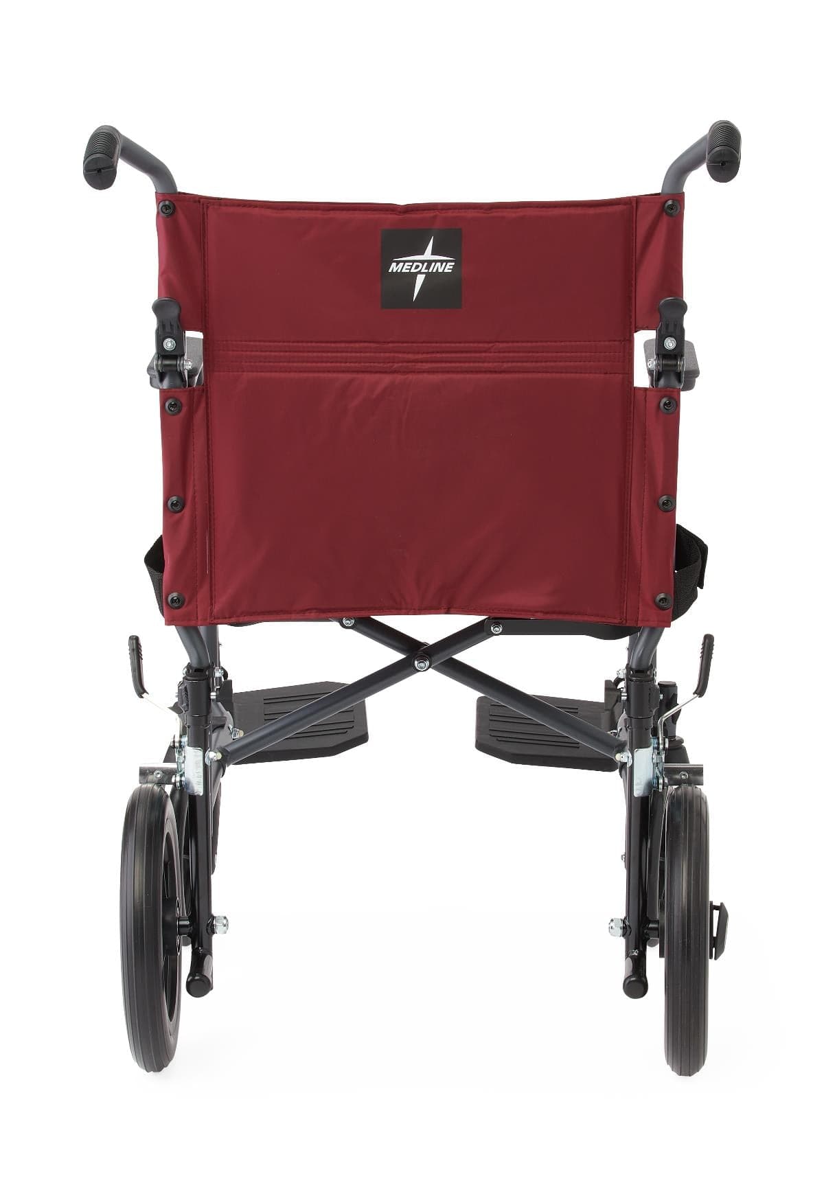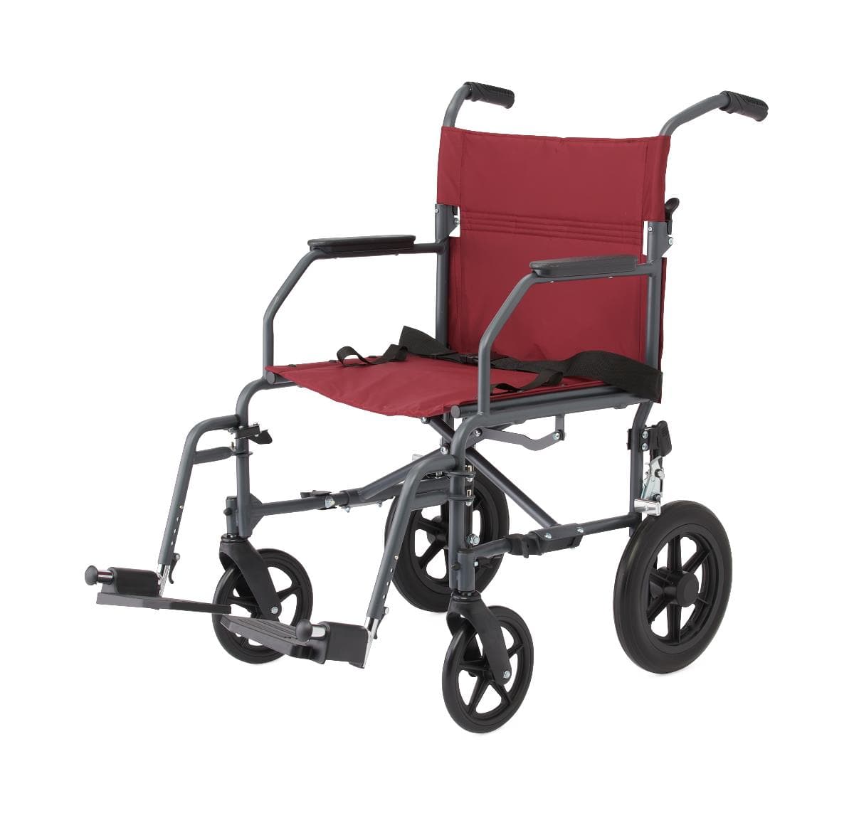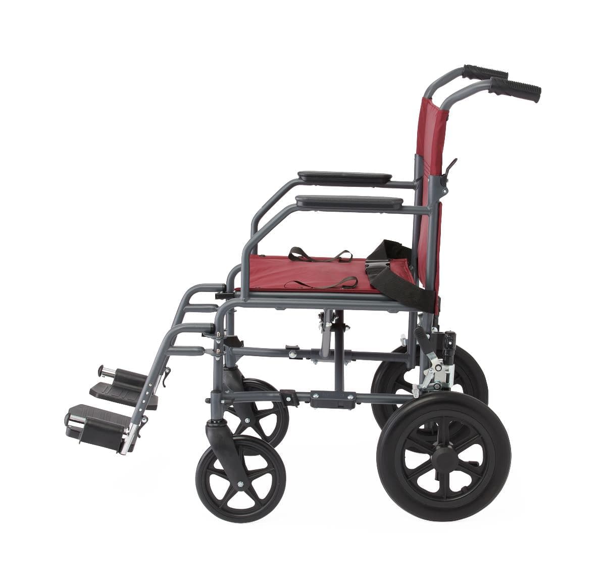 Medline Basic Steel Folding Transport Chair with 12" Wheels - Gray and Burgundy