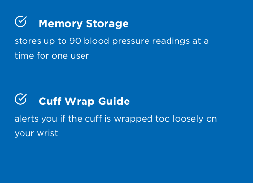 - Heart Zone Guidance technology helps to guide your wrist to the proper position (at heart level), helping to get a more precise reading, while the Advanced Averaging feature automatically averages up to your last three readings taken within the last 10 minutes for a more accurate picture of your heart’s health.