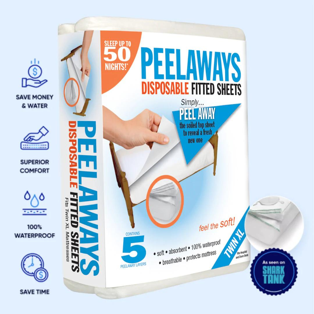 - Hassle-free: Never wash your bed sheets again with PEELAWAYS. PEELAWAYS allows you to simply tear off the dirty layer without a trip to the washing machine. With 5 Peel away Layers, just peel it off and enjoy a clean soft sheet below. Eliminates hassle of laundry.