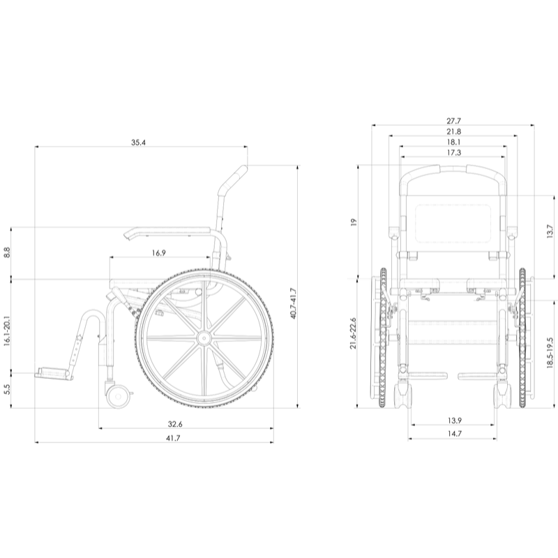 The SB6w shower chair comes with 2 x 24" wheels with hand rims