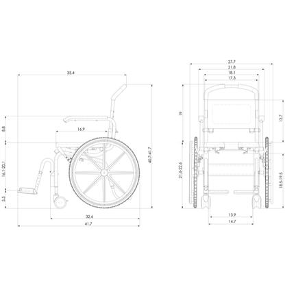 - Chair Length - including footrest 1060mm (820mm with footrests