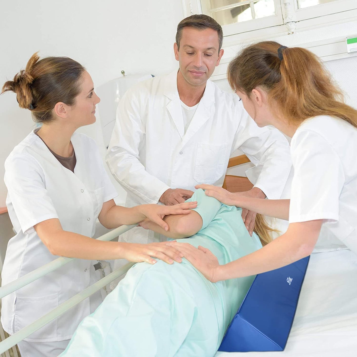 - Stays Secure - It's important your bed wedge pillow stays in place while in use. The high grip non stick bottom will let patients get full body weight support without moving. However, the entire pillow is easy to move and reposition when lifted off the bed.